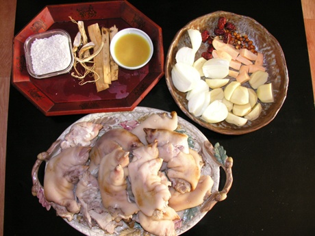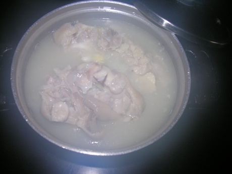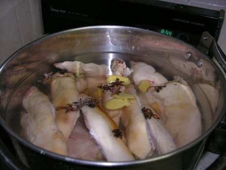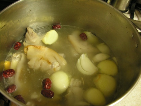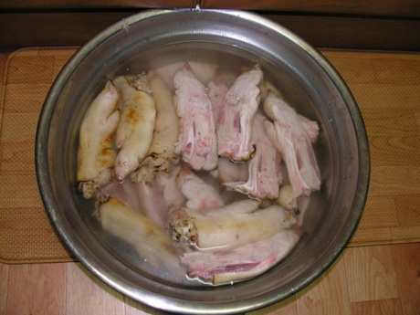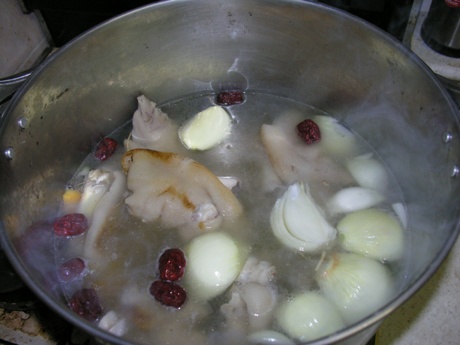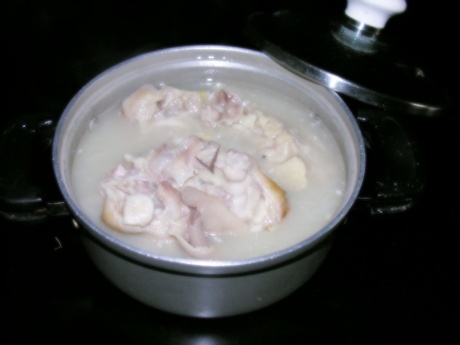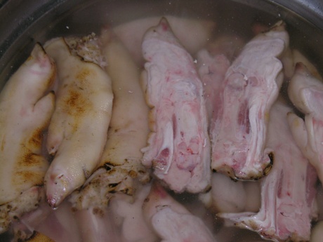 족을 솥에 담고 물을 6리터 붓고 반 시간 가량 끓이다가